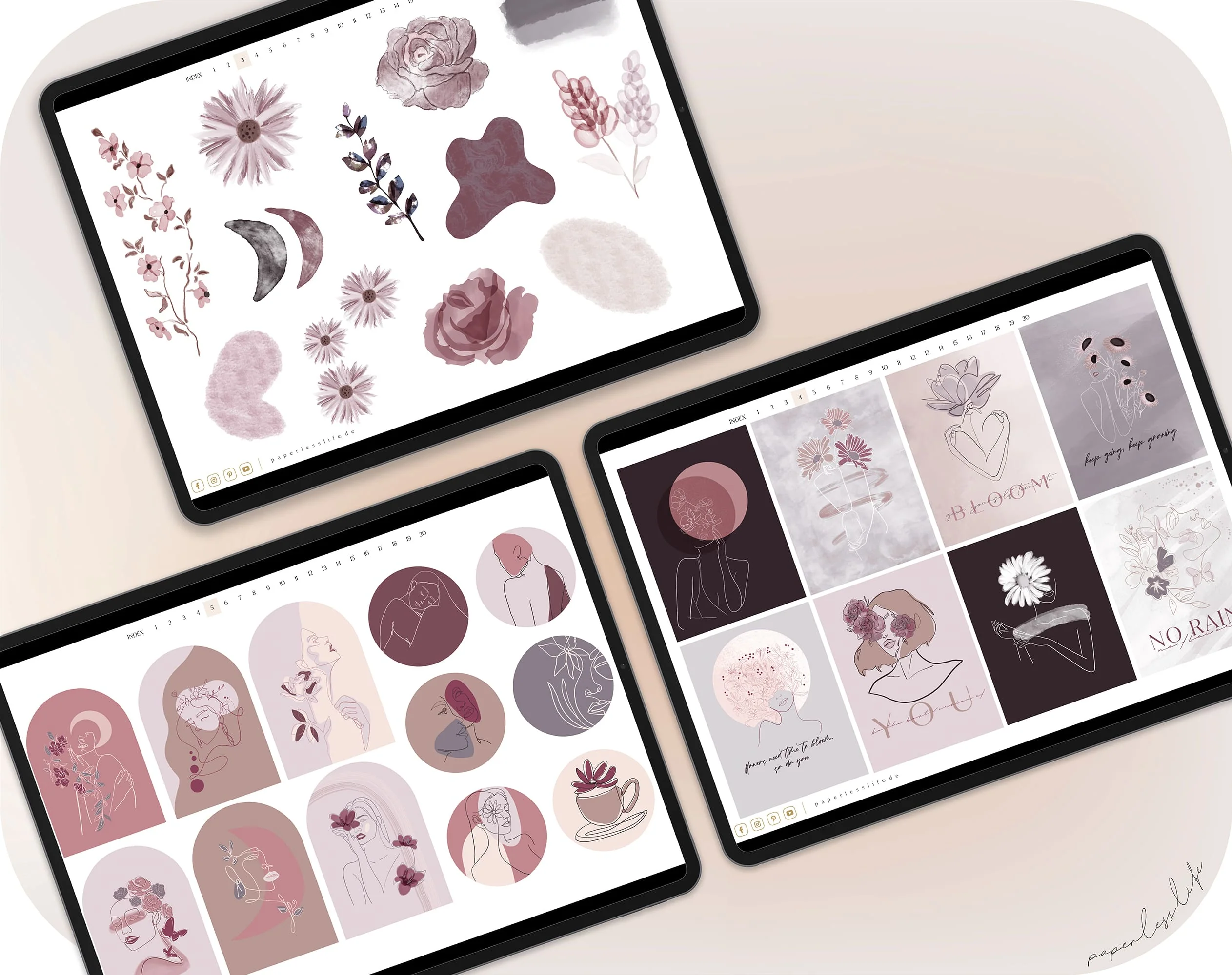 Digitale Sticker SELF LOVE Set für digitale Planer. Du erhältst insgesamt 407 digitale Sticker in einem Stickerbuch als .goodnotes Datei. Die Sticker sind vorgeschnitten, damit du sie ganz einfach kopieren und in deinen digitalen Kalender einfügen kannst. Das Stickerbuch hat ein Register und ist verlinkt, sodass du schnell zu der jeweiligen Seite gelangst.