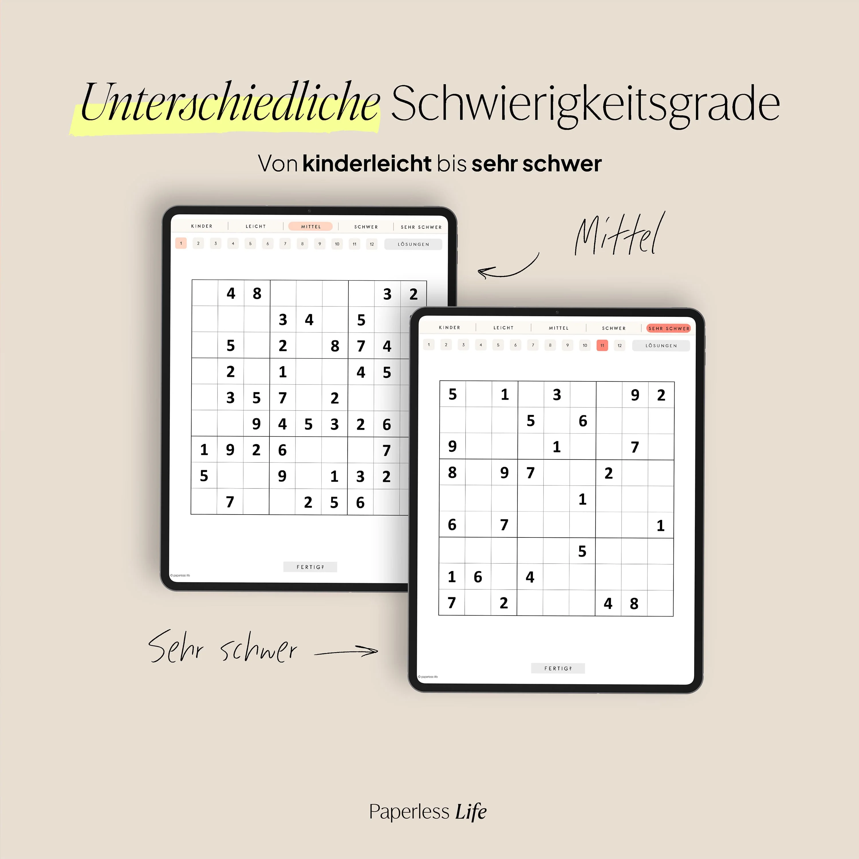 Das digitale Sudoku-Heft ist nicht nur ideal für Rätsel-Enthusiasten, sondern auch perfekt, um deine Konzentration zu trainieren und den Kopf frei zu bekommen. Kein Papier, kein Chaos – einfach digital, nachhaltig und immer griffbereit. Ob unterwegs oder zu Hause: Mit diesem Sudoku-Heft wird jeder Moment zum Rätselspaß!