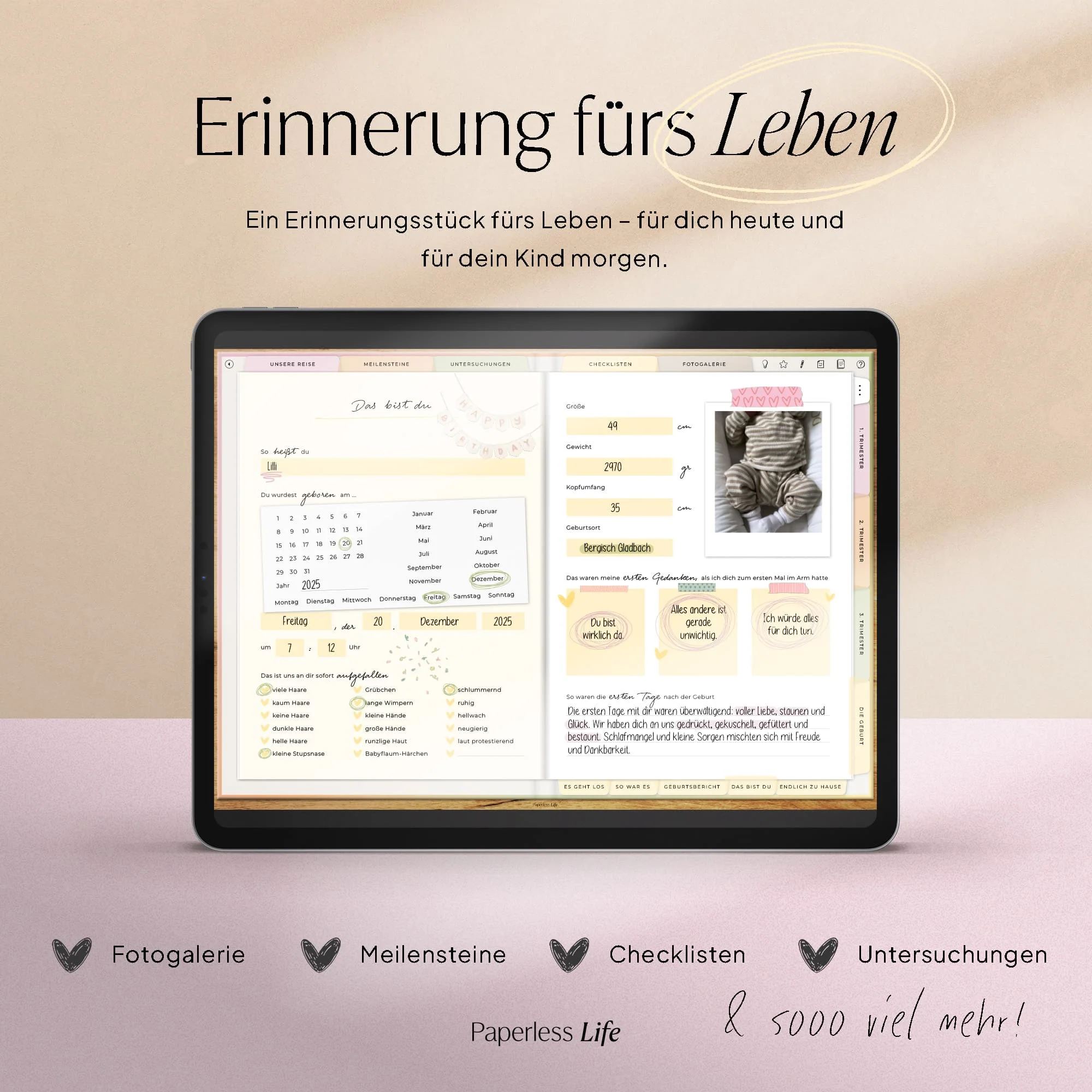Dieses Schwangerschaftstagebuch ist dein persönlicher Raum – individuell, emotional und strukturiert zugleich. Für Erinnerungen, die bleiben.