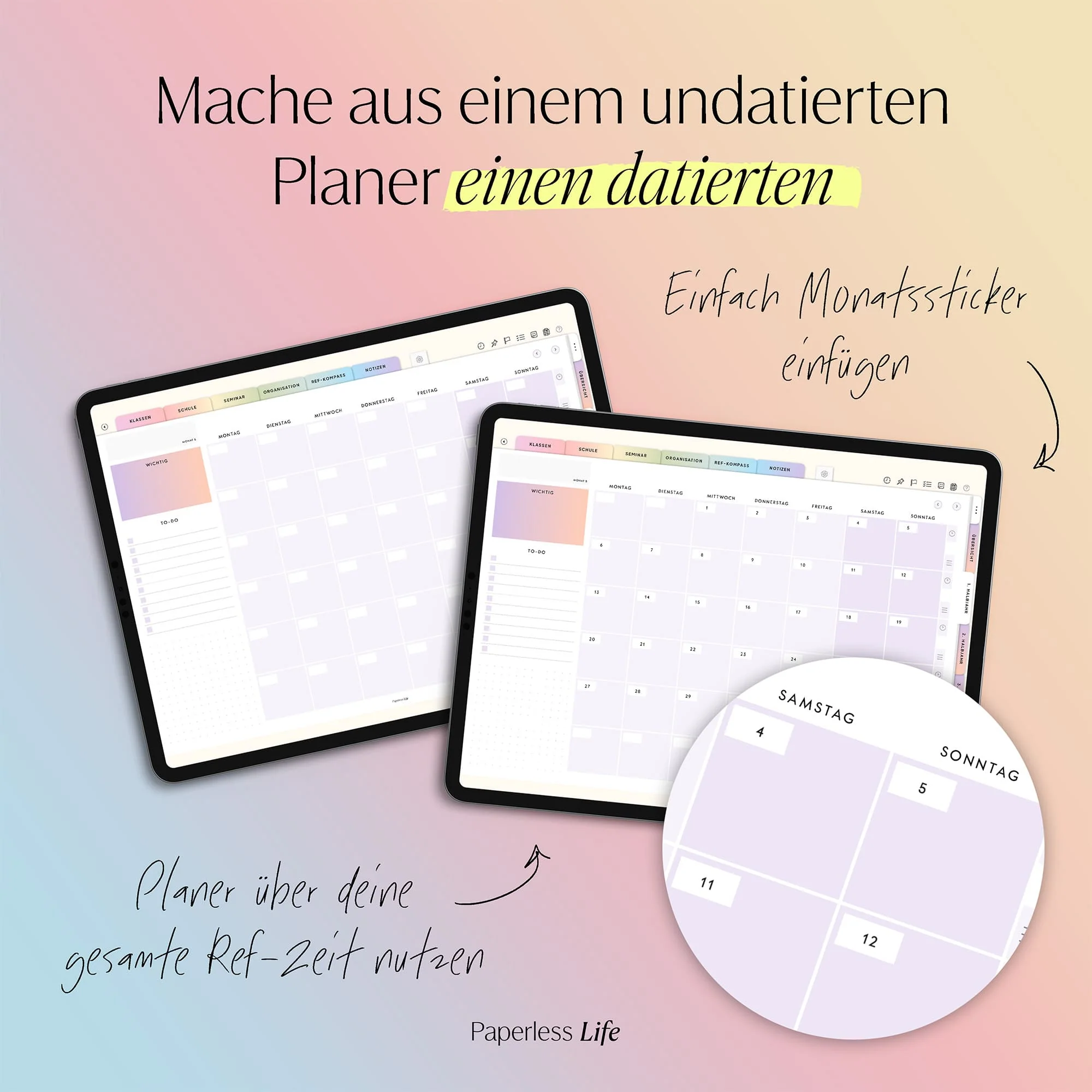 zwei Layouts für die Wochenansicht – perfekt, um schulische und private Planung klar zu trennen,